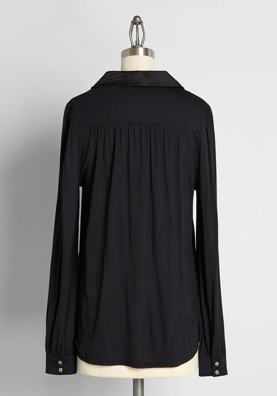 Word on the street is you’re savvy in timeless style, and as you step out having fashioned this luxe, black top, you prove every rumor to be true! Part of our ModCloth namesake label, this button-up showcases a smart drop collar, buttoned cuffs at the long sleeves, subtle shirring at the back yoke, and a hint of vintage inspiration that’s still very sharp today, this retro top is as stylish as ever.