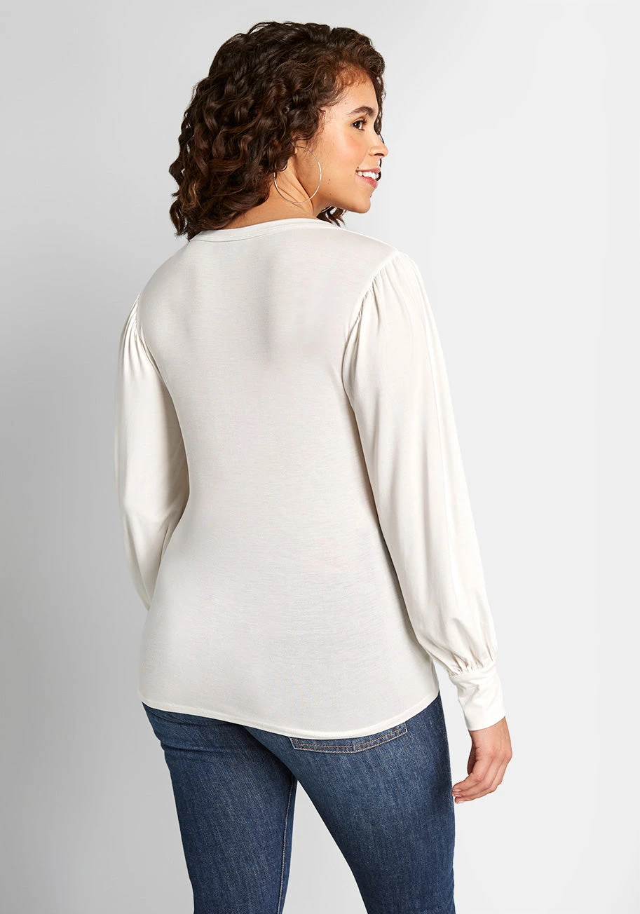 With the wearability of your favorite white tee, and the added elevation of bishop sleeves, this knit top from our ModCloth namesake label refreshes the notion of a wardrobe staple! Touchably soft and proudly made in America, this versatile piece is an easy way to upgrade your outfit rotation.