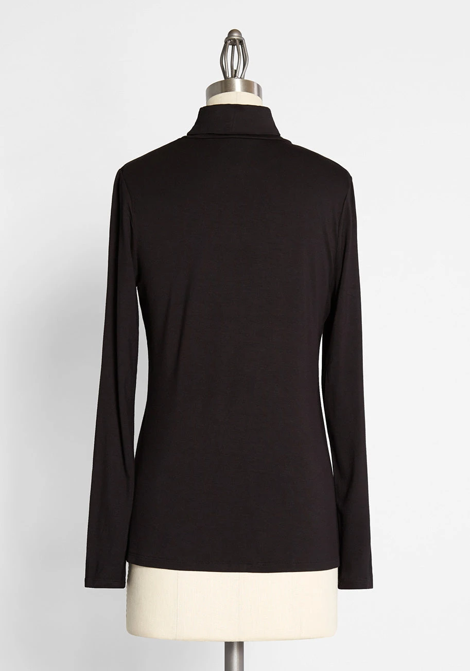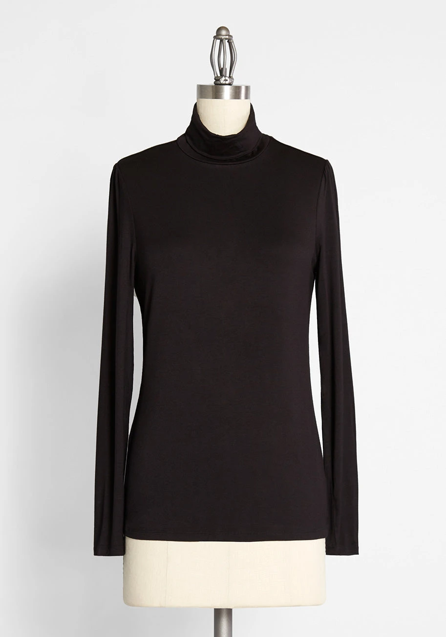 Crafted from incredibly soft knit and draped in a jet black hue, this turtleneck from our ModCloth label was designed to be flaunted with frequency. Pair this long-sleeved top with everything from jeans to jumpers.