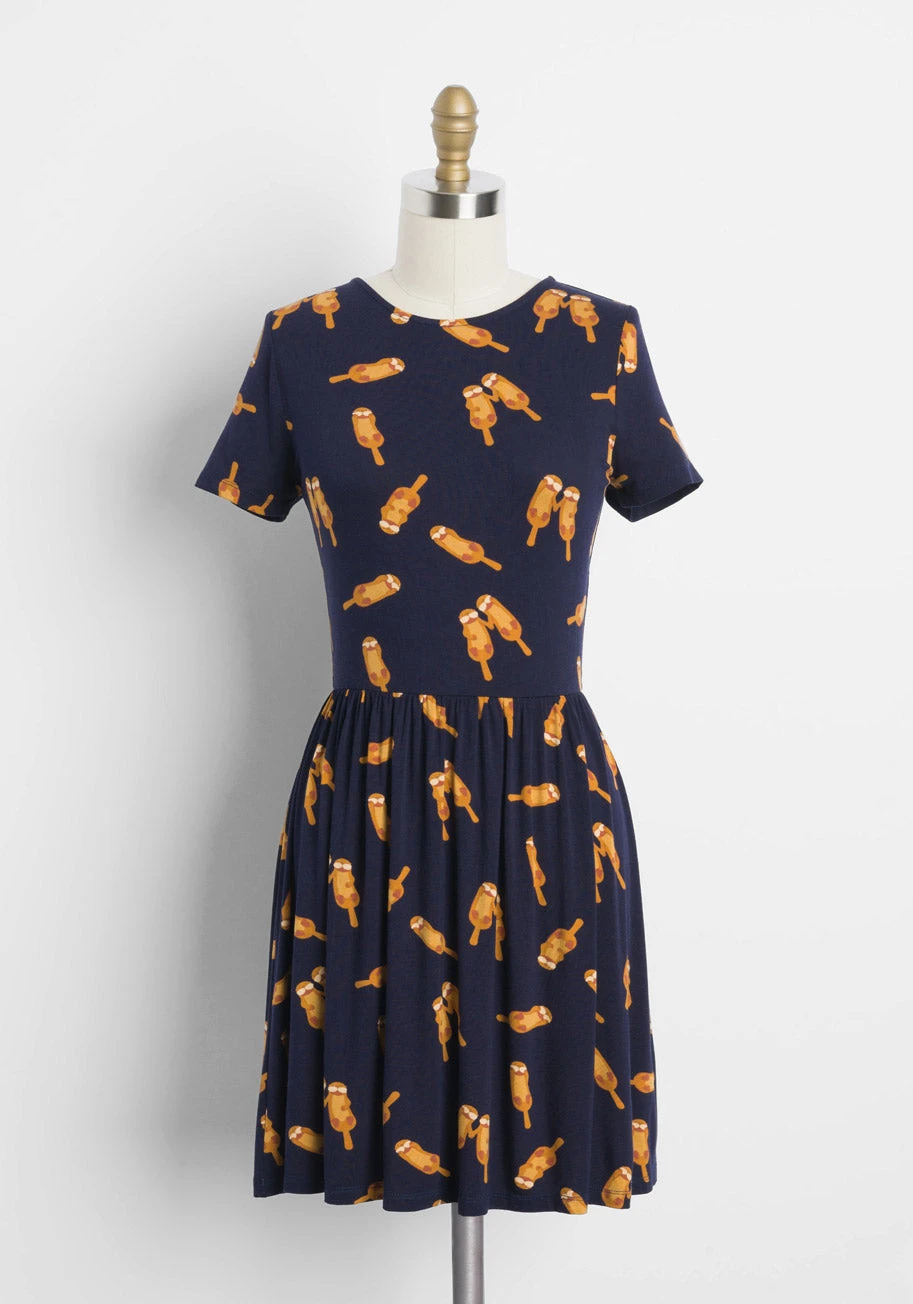 It’s simple to discern that you look quite cute in this navy blue knit dress from our ModCloth namesake label! What’s not so apparent to the onlooker is just how comfortable you feel all wrapped up in the short sleeves, gathered waist, and exclusive, hand-drawn, orange-hued otters adorably scattered all over this knit A-line sundress. It’s an uplifting experience unlike any ‘otter’ that’s just delightful for the wearer and admirer alike!