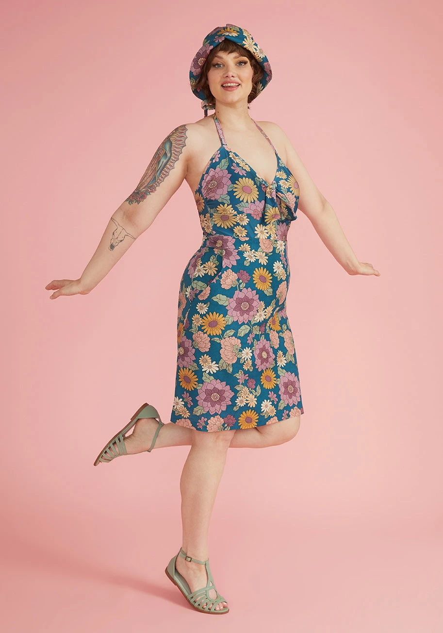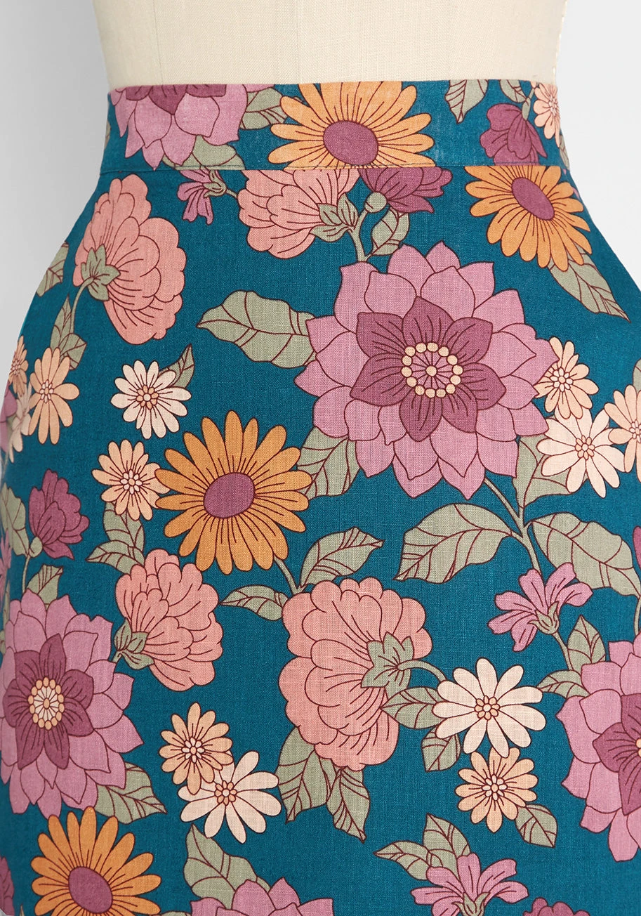 In our latest collab with Princess Highway, Melbourne’s most popular vintage-inspired label, we have partnered up for another exclusive collection! This beautiful teal-hued skirt features a print full of bountiful blooms that can’t be found anywhere else. Made from a lightweight, breathable cotton poplin fabric, this mini skirt boasts a whimsical variety of green-stemmed wildflowers in shades of pink, orange, and white showing off in all their glory. Featuring button and zip back closure, a high-waisted silhouette, and retro-chic sensibility, this cute separate is perfect for the warmer months ahead.