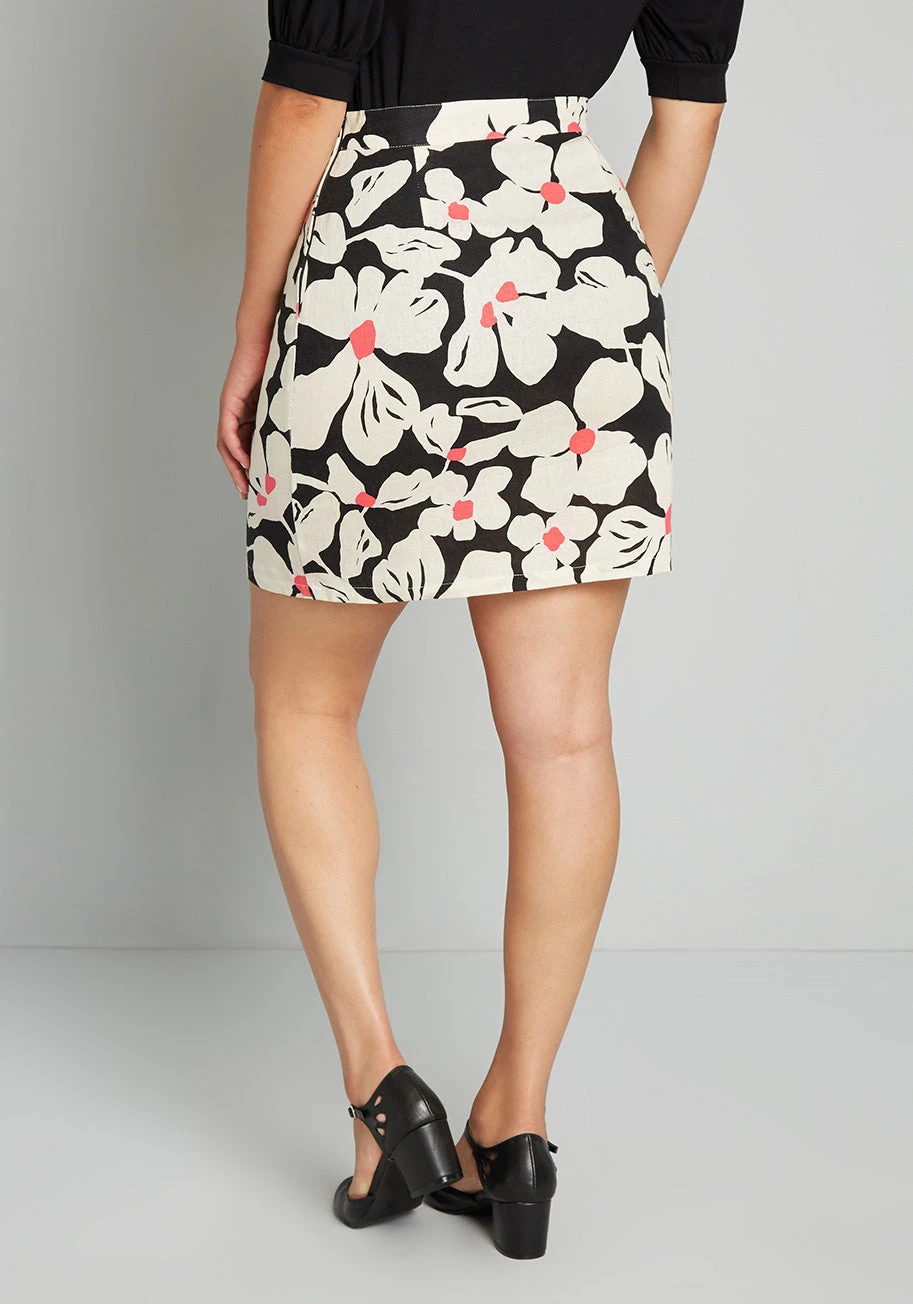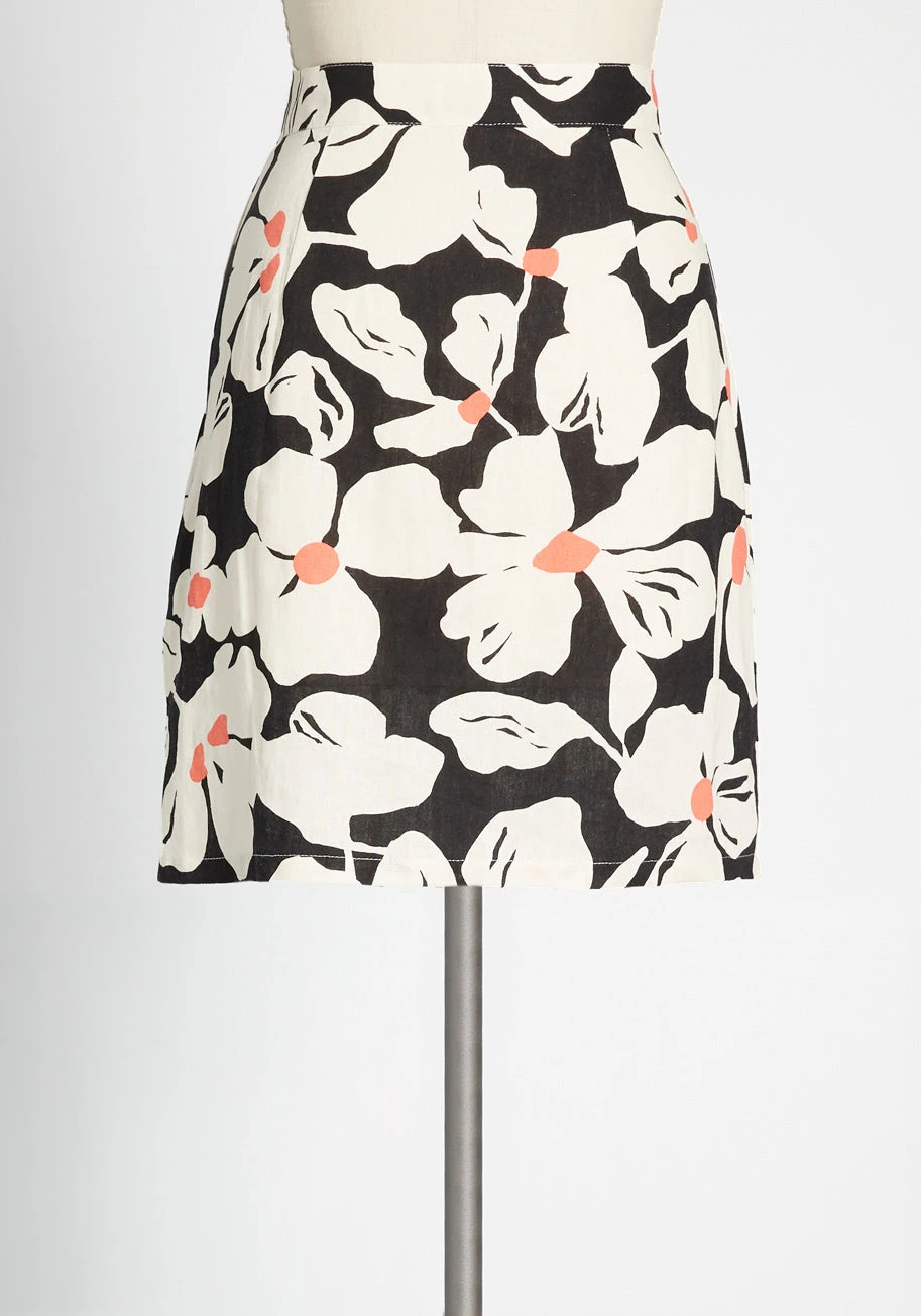 Well, would you look at that—a style as upbeat as this mini skirt inspires an equally optimistic feeling! Designed by our ModCloth label, this versatile A-line skirt happily lends its hand-drawn, 60s-inspired floral print, lightweight linen-blend fabric, and classic cut to your most memorable outfits. Need ideas for where to rock this woven separate? We suggest work, lunch dates, or daytime socials, just to name a few.