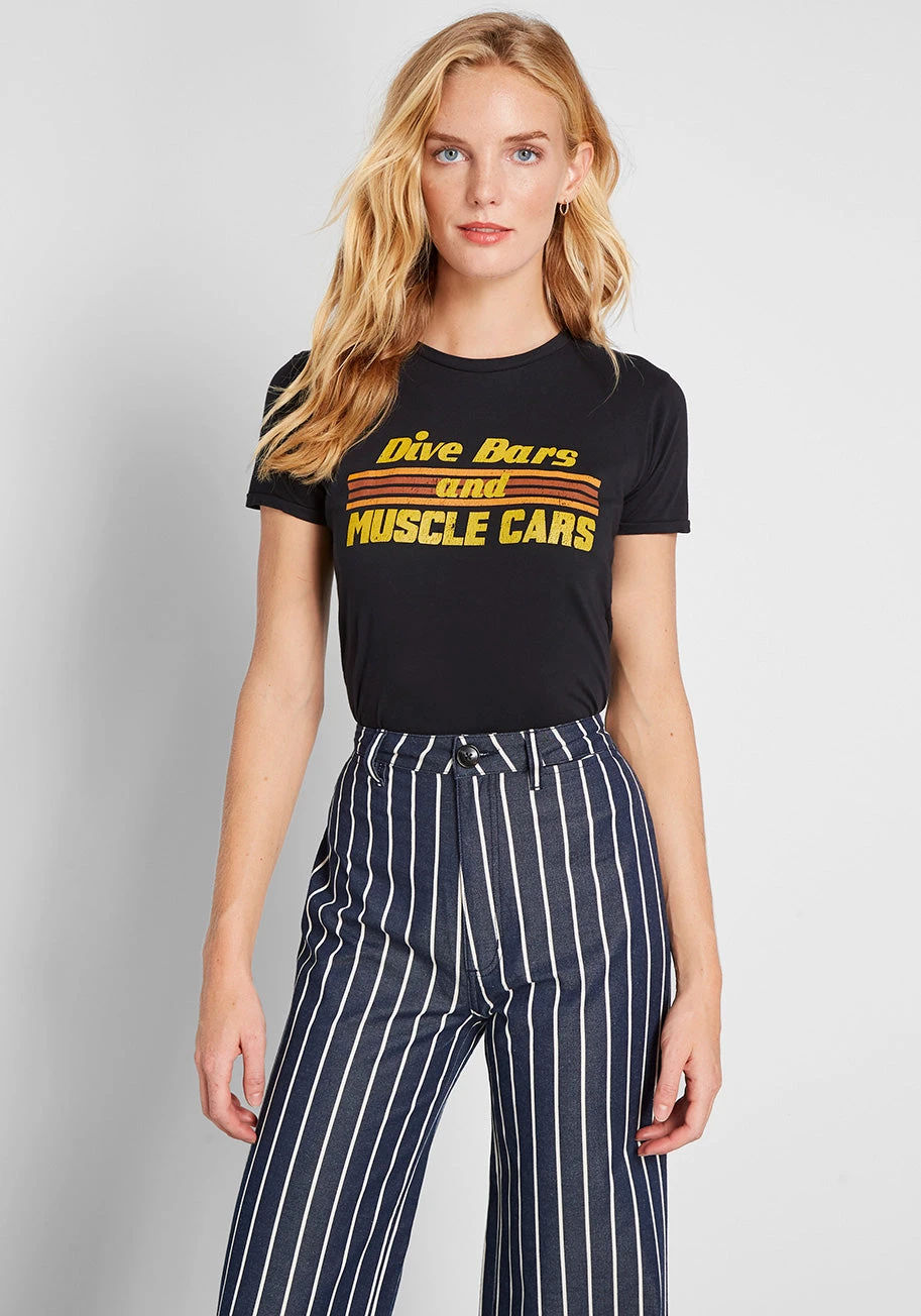 This black graphic tee from Electric West combines two of your favorite things with one 70s-inspired screen print! Made in L.A., this short sleeve crew neck is crafted from durable and breathable cotton.