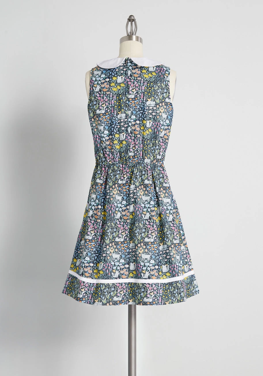 As your guests arrive at your dinner and cocktail party, they’ll have to try not to lose their heads over this purr-fectly chic fit and flare dress! Embellished with a colorful floral and cat print, this playful cotton frock brings a whimsical vibe to a classic cut. Finished with a pleated-front, pocketed skirt and a complementary Chelsea collar, this style is smart and hip – literally!