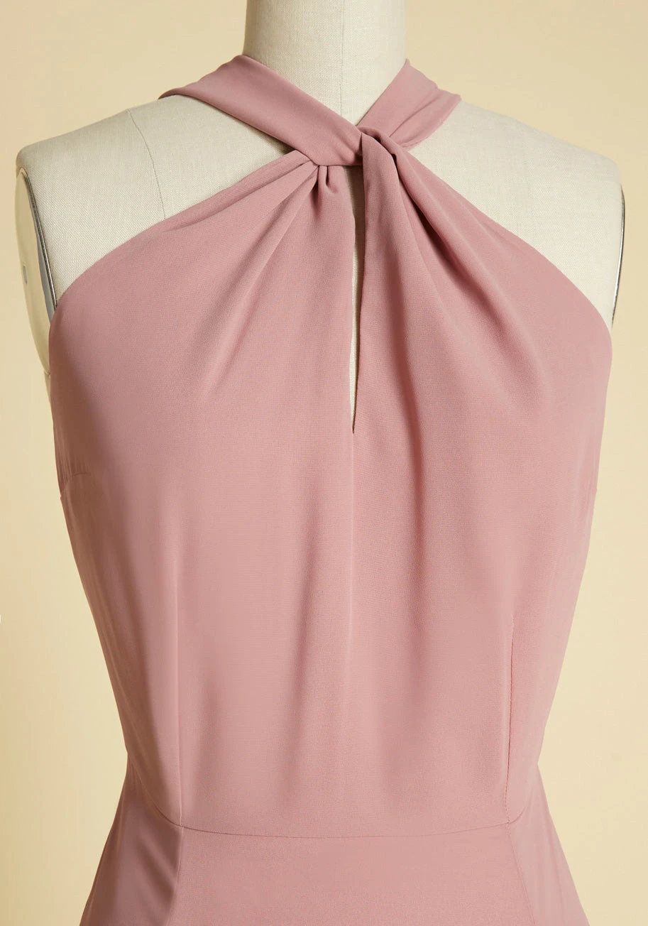 You’re equally ecstatic about your BFF’s big day as you are wearing this gorgeous, rose maxi dress! A twisted halter neckline provides an unexpected update to this bridesmaid gown from our ModCloth label, while its sleeveless silhouette and flowy skirt will keep you feeling cool and comfy as you celebrate the joyous occasion.